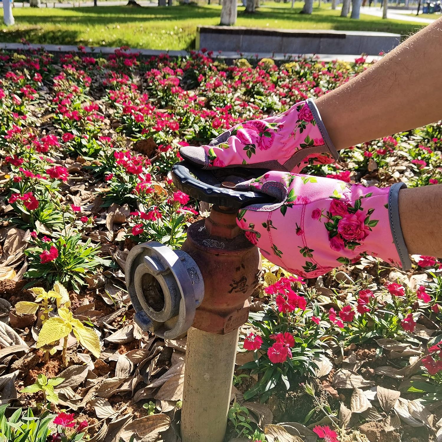 Women’s Rose Floral Gardening Gloves – Touchscreen Fingertips, Breathable Fabric, Non-Slip Palm, One Size Fits Most (Pink Print)